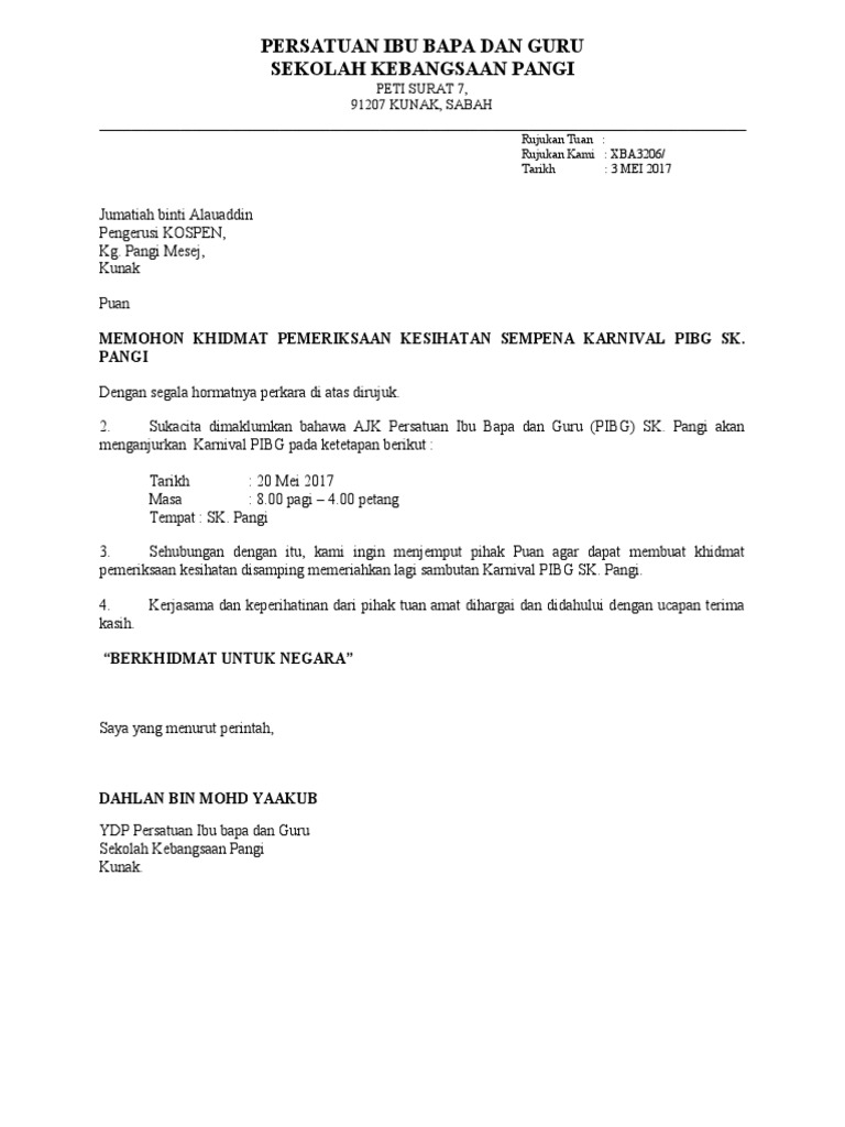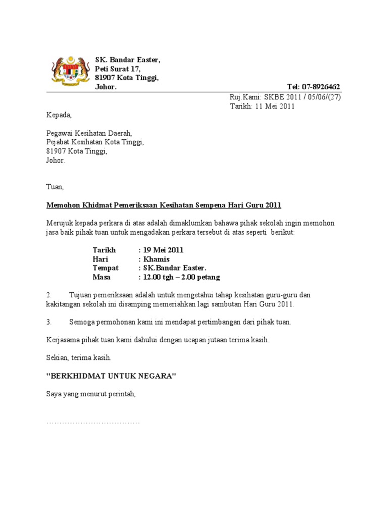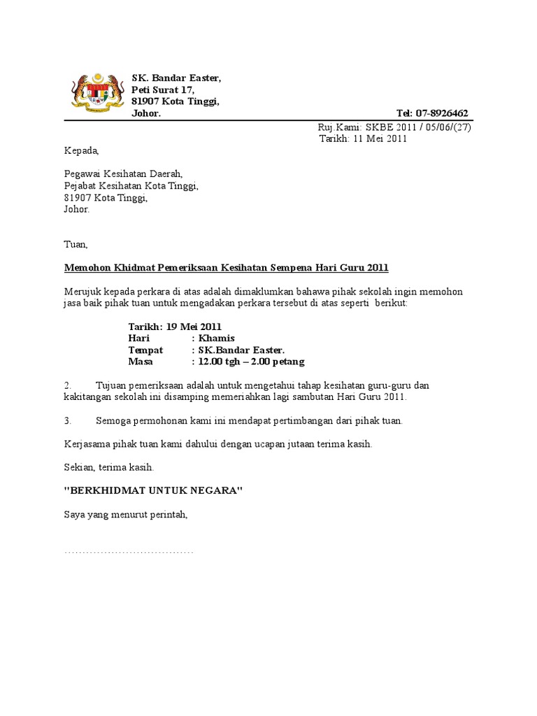 Contoh Surat Permohonan Pemeriksaan Kesihatan Pdf